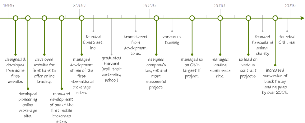 I have a diverse background working on websites in both management and hands-on roles. My extensive UX experience (as well as the study of human and consumer behavior) allow me to not only make a product easy to use, but to analyze every aspect of it and carefully guide users through the sales cycle, and increase conversions. Having worked in many fast-paced environments, I've learned to solve problems using a variety of resources such as site analytics, industry data, best practices, talking to sales and customer service teams, soliciting user feedback, and testing, as well as drawing on my own experience and applying basic common sense. I have a very goal-oriented approach where every action is intended to reach a very specific goal, which then addresses a larger business goal; allowing tasks to be prioritized for the highest ROI. I also believe in the "lean" model of making small changes and constantly testing and analyzing the results.